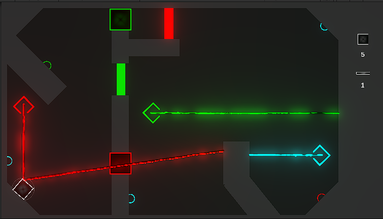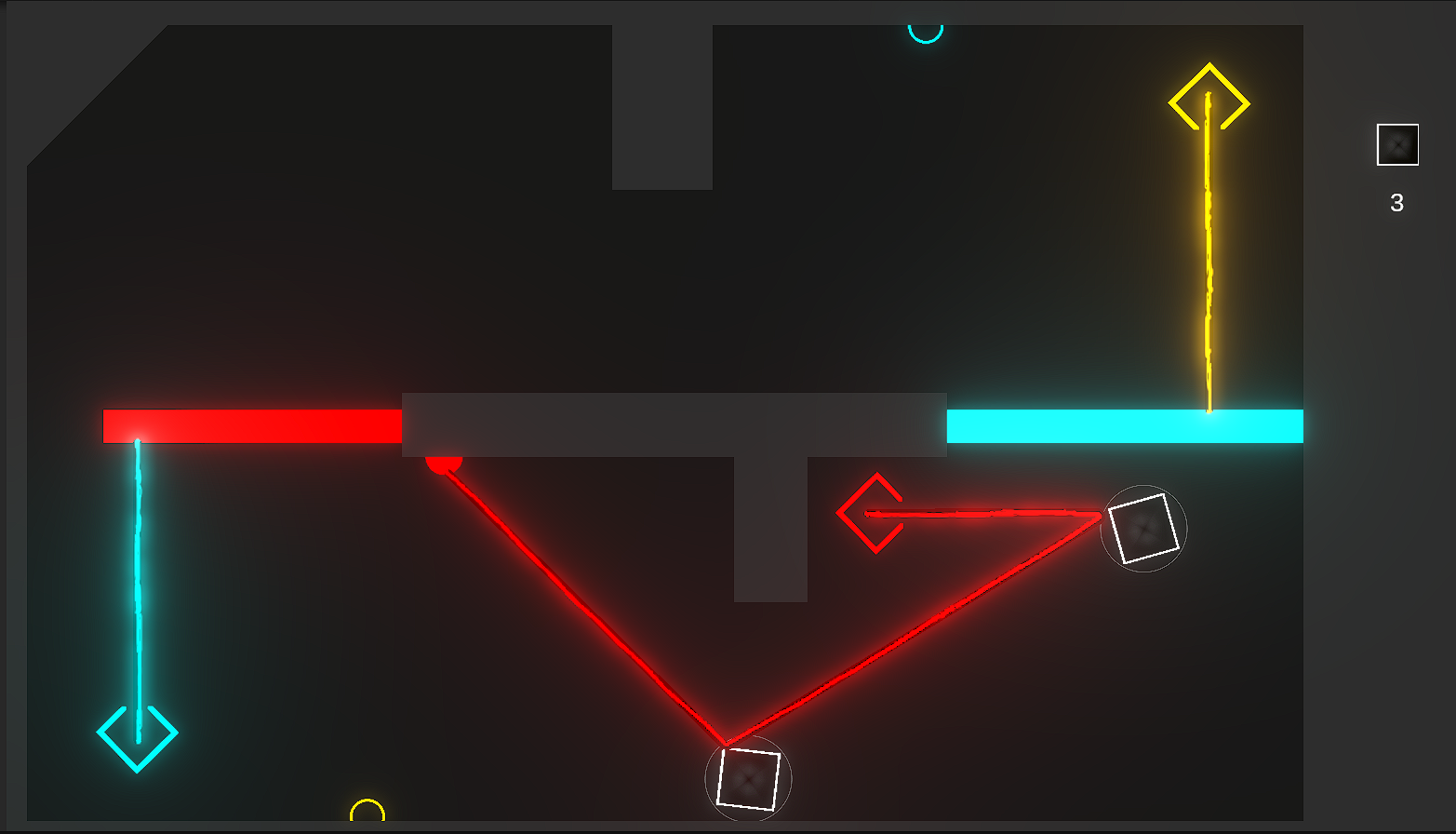 Some levels introduce stationary mirrors, doors, or splitters —